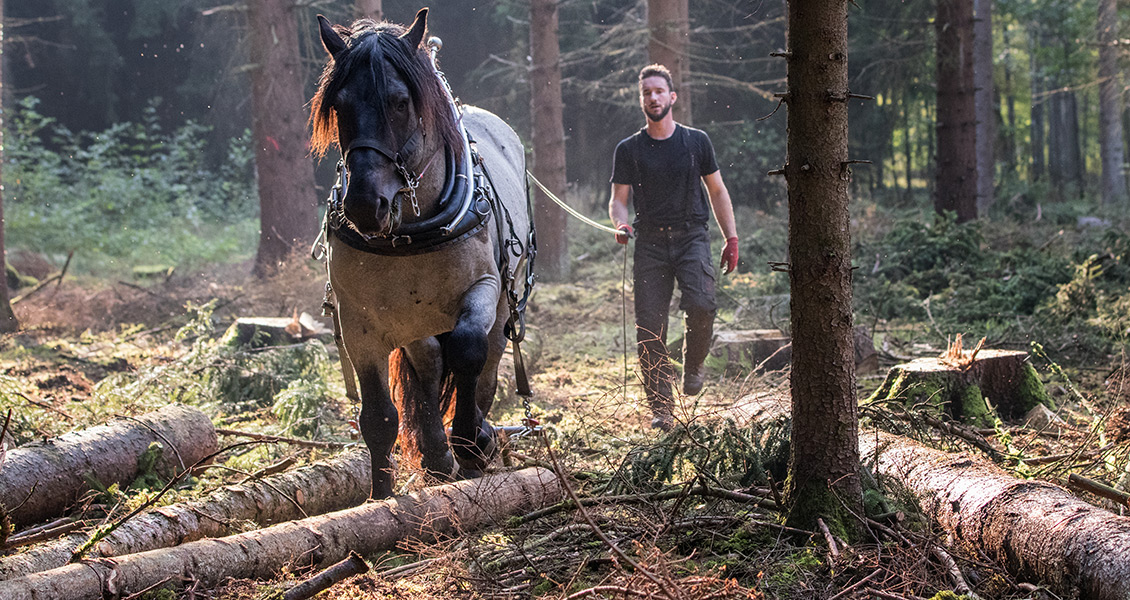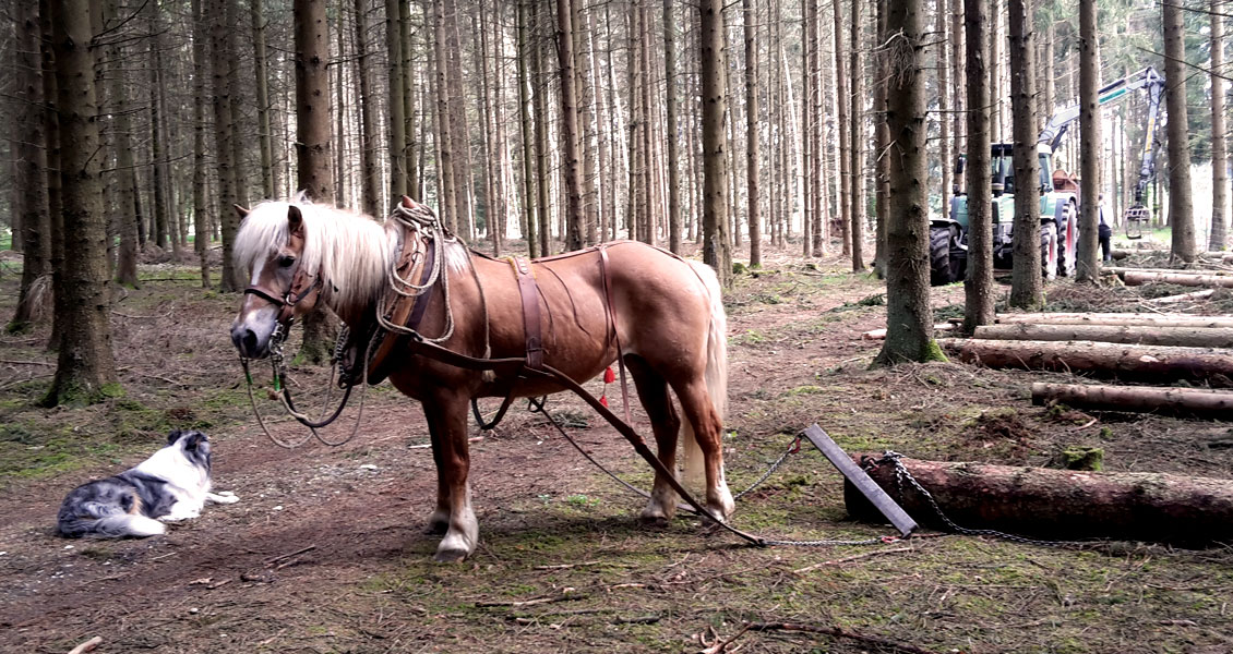 Bei der Bewirtschaftung unserer Wälder sahen wir uns immer wieder mit den Grenzen der Technik konfrontiert: Die Seilwinde ist zu langsam, die Befahrbarkeit der Böden witterungsbedingt für schwere Maschinen oft nicht gegeben; vom Bestandsschutz ganz zu schweigen. Was liegt da näher, als mal das eigene Pferd anzuspannen?