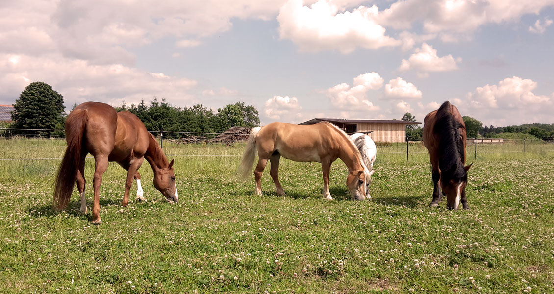 Die Möglichkeit zur dauernden Futteraufnahme (bis zu 16 Stunden pro Tag), verbunden mit der langsamen Fortbewegung im Schritt, im sozialen Verbund einer Herde ist Voraussetzung für gesunde und ausgeglichene Pferde. Unserer Meinung nach kann dies mit dem Paddock Trail am besten umgesetzt werden.