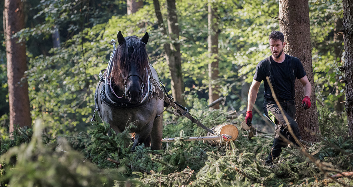 Nach zugegeben bescheidenen Anfängen ist die Pferdearbeit in unserer Forstwirtschaft mittlerweile zu einer festen Größe geworden. Neben einem Haflinger setzen wir zukünftig vermehrt auf den Noriker. Dieser stellt auf Grund seiner Stärke, seiner Trittsicherheit und seines angenehmen Temperaments in unseren Augen das perfekte Arbeitspferd dar. Alle unsere Pferde werden im Alter von drei Jahren schonend von uns selbst auf ihre kommenden Aufgaben vorbereitet.