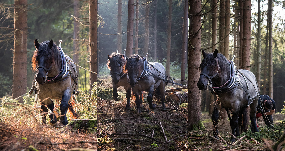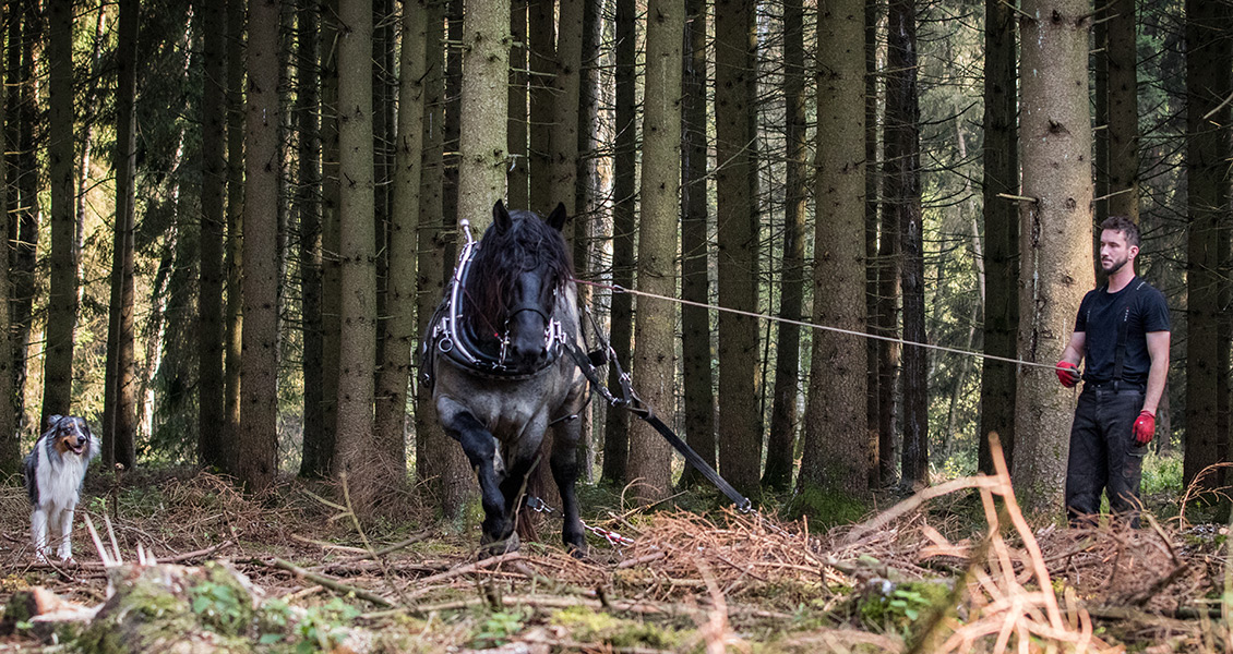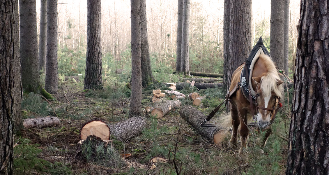 Bei der Bewirtschaftung unserer Wälder sahen wir uns immer wieder mit den Grenzen der Technik konfrontiert: Die Seilwinde ist zu langsam, die Befahrbarkeit der Böden witterungsbedingt für schwere Maschinen oft nicht gegeben; vom Bestandsschutz ganz zu schweigen. Was liegt da näher, als mal das eigene Pferd anzuspannen?