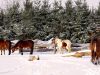 Die Fütterung erfolgt einerseits über Fressständer und andererseits über auf dem Trail verteilte Stroh- und Heuraufen. Dadurch werden die Pferde zu vermehrter Bewegung angeregt. Um die Fresszeiten zu verlängern bedecken Netze das Raufutter. Genau wie die Lecksteine befindet sich auch die Wasserstelle entfernt vom Stall auf dem Trail. Diese ist beheizbar und erlaubt den Pferden, von stehendem Wasser in der richtigen Höhe zu trinken. Inmitten der Anlage befindet sich die 130 m² große Liegehalle. Für optimale Frischluftzufuhr sorgen hier Windschutznetze und eine offene Südseite. Eingestreut wird hier mit Grünkompost, da dieser von den Pferden nicht gefressen wird, und sie sich damit wirklich nur zum Ruhen einfinden. Raumteiler sorgen für ein entspanntes Liegeverhalten aller Pferde. Da es bei uns keinen geschlossenen Stall im herkömmlichen Sinne gibt, entscheiden unsere Pferde selbst, wo sie sich aufhalten wollen. Mehr Klimareize gehen nicht …